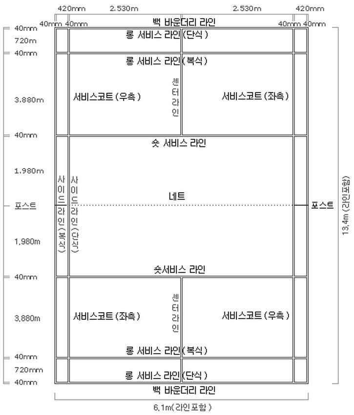 - 라인 폭 : 4cm, 코트 대각선 실이 : 14.723m