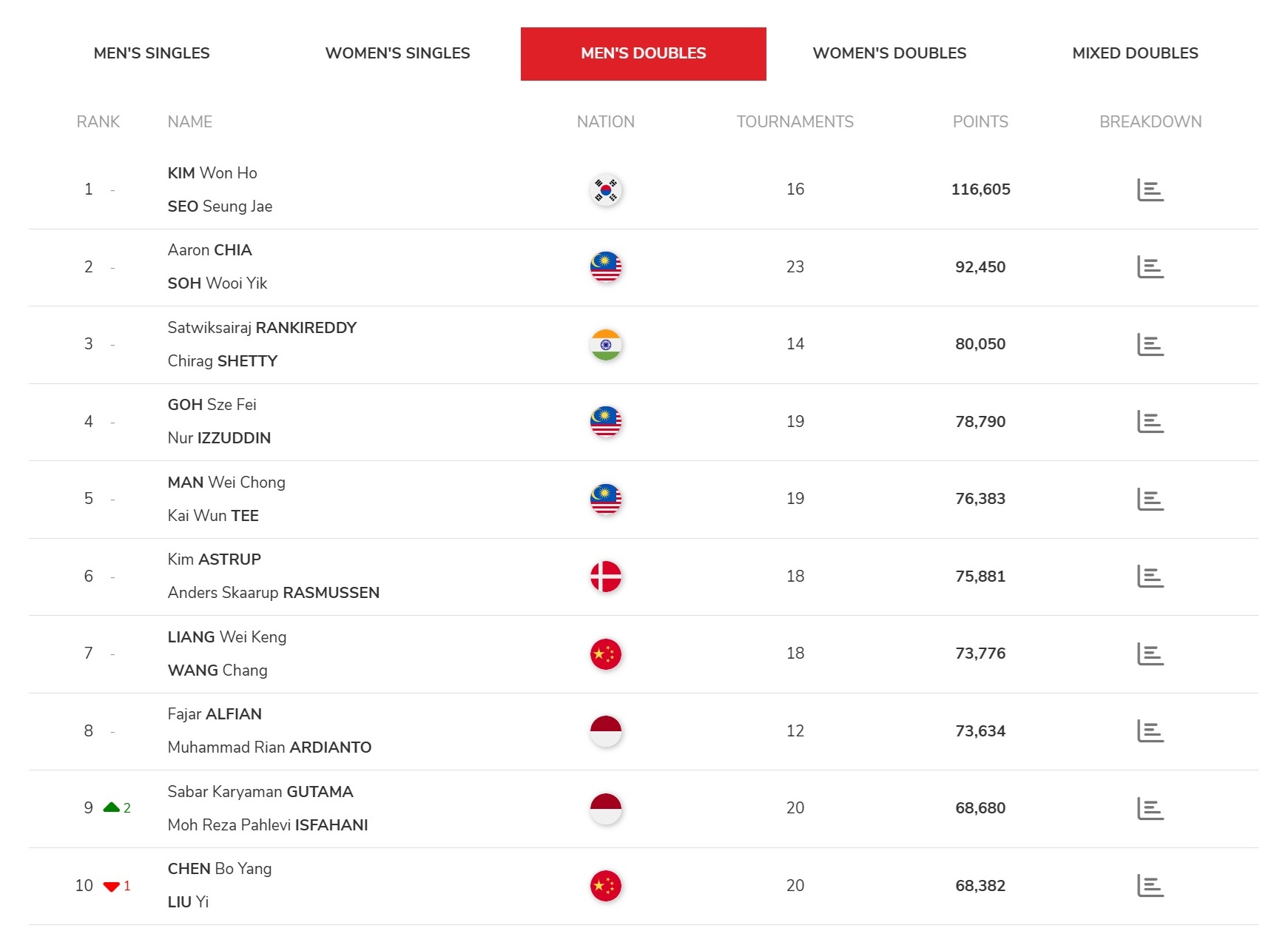 사진1, 남자복식 BWF 월드랭킹 10위 (사진 출처 BWF홈 페이지 11/04/2025)