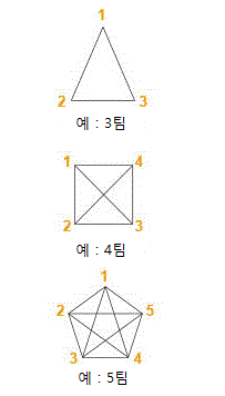 3. 만약 점수가 같은 두 팀이 나오면 서로의 경기에서 이긴 팀이 올라 간다.