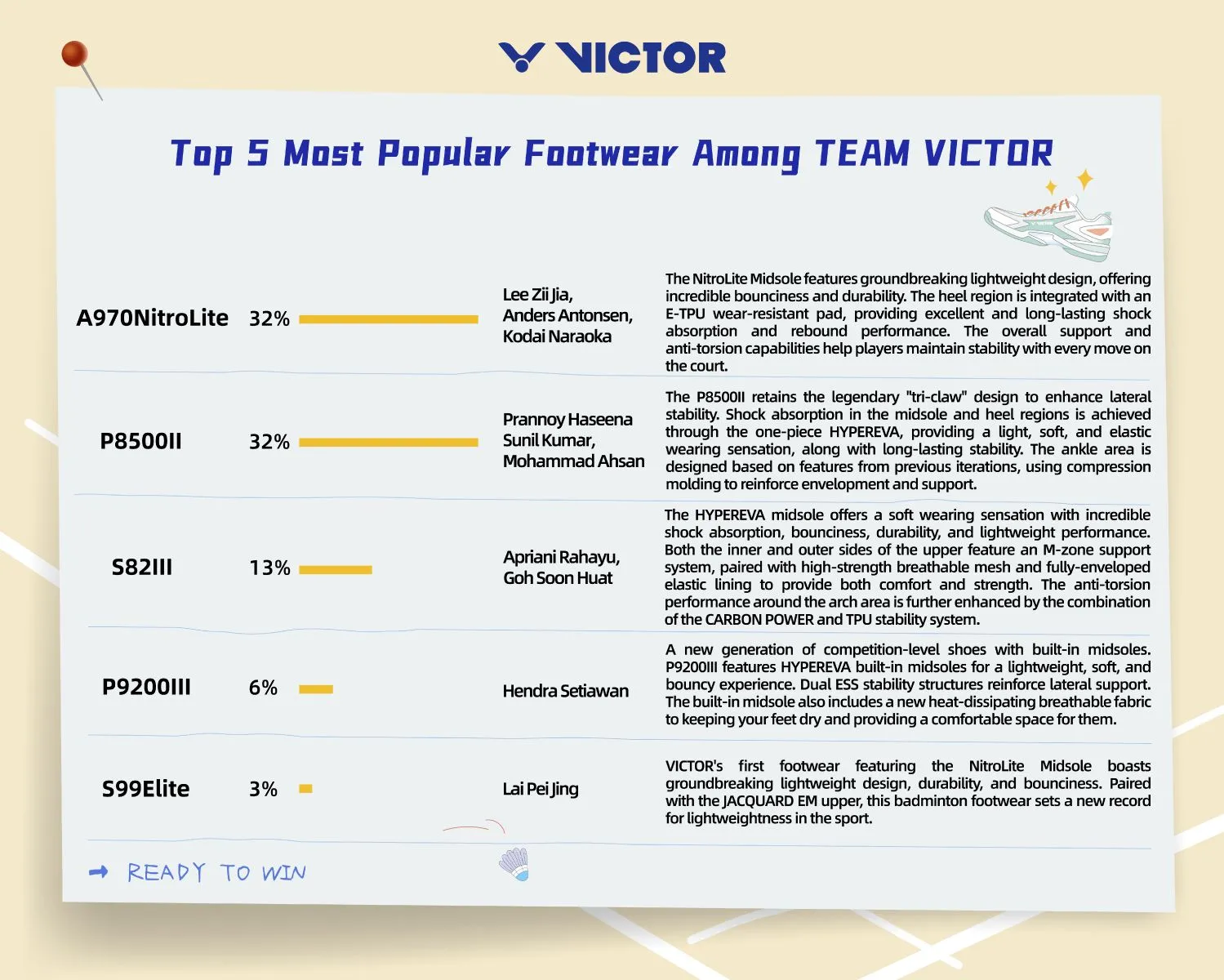 TEAM VICTOR에서 가장 인기 있는 5가지 신발